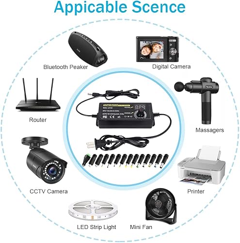 L’adaptateur universel AC/DC 3V à 24V 5A est une solution d’alimentation polyvalente compatible avec la majorité des appareils électroniques domestiques. Idéal pour remplacer un chargeur perdu ou défectueux, il offre une tension réglable et une puissance maximale de 72W pour une utilisation sécurisée et fiable.