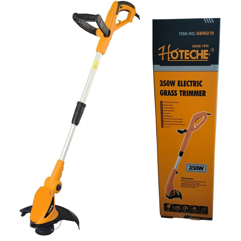 Caractéristiques techniques du coupe-bordure électrique Hoteche  : largeur de coupe : 25 cm. Niveau sonore : 96 dB. Vitesse de rotation (en tr/min) : 11500 tr/min. Puissance (en W) : 350 W. Capacité de coupe (en mm) : 25 cm. Poids : 1,8 kg. Alimentation : 230 V. Bobine de fil. Câble d’alimentation : 0,35 m. Diamètre fil : 1,6 mm.