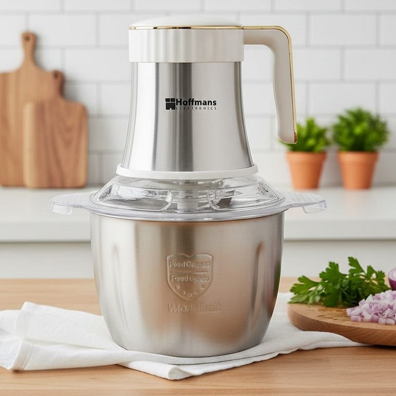 Il s’agit d’un hachoir électrique Hoffmans HM-8890 en acier inoxydable.