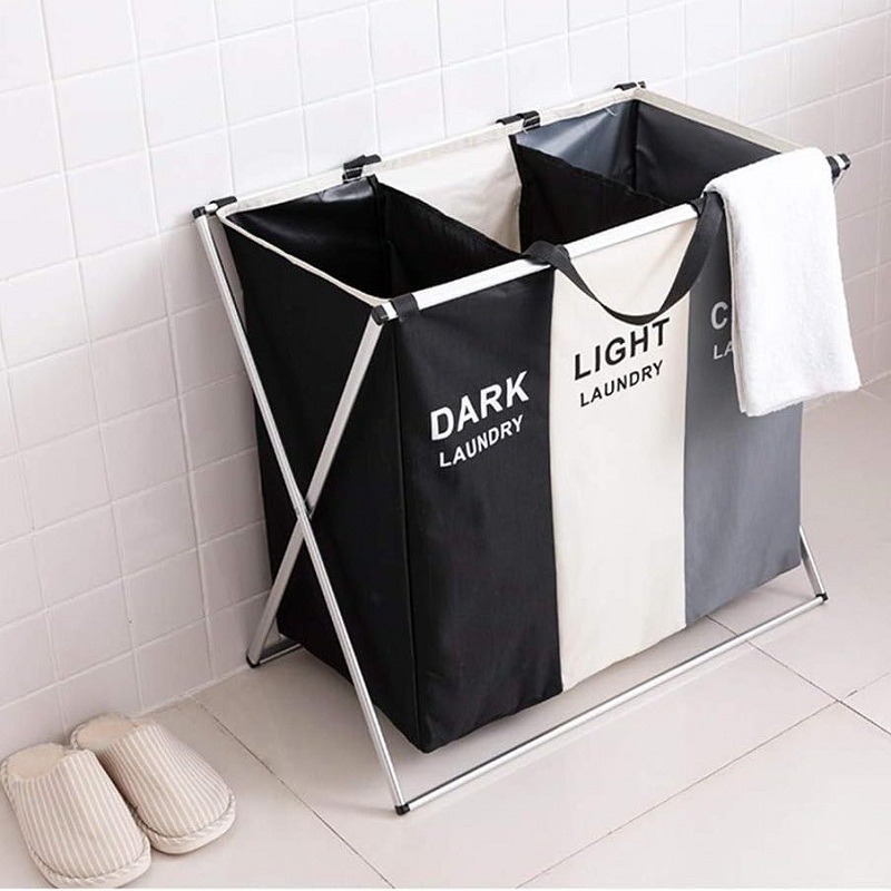 - Stockage de classification des vêtements sales: Le panier est équipé de trois compartiments séparés, permettant de trier et de classer efficacement les vêtements sales ou autres articles divers.