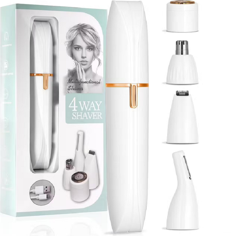 Rasoir pour femme, 4 en 1 pour le corps, le pubis et le nez, épilateur facial, sans fil