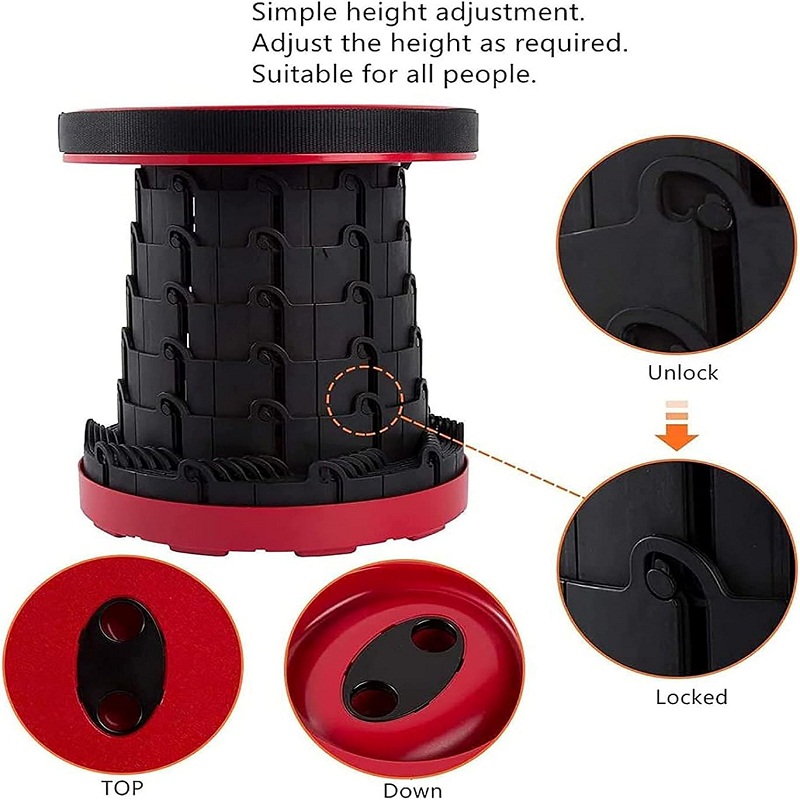 • Largement application : le tabouret extensible est parfait pour l’intérieur et l’extérieur. Occasions d’intérieur telles que le salon, la chambre, la salle de bain, la cuisine ; activités de plein air comme le camping, la pêche, la randonnée, le pique-nique, la file d’attente, le jardinage, etc.
